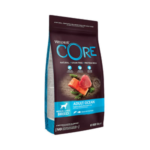 ويلنس كور طعام جاف للكلاب البالغة من السلالات المتوسطة والكبيرة لدعم صحة البشرة والفرو بنكهة التونة والسالمون