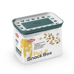 صندوق بلاستيك للمكافآت من ستيفان بلاست، مُصنع من مواد بلاستيكية آمنة على أكل القطط و الحيوانات الأليفة ، سهل التنظيف ولا يسمح بتراكم البكتيريا التي تؤثر على طعام حيوانك الأليف.سهولة حفظ مكافات اليفك بواسطة وجود مطاط محكم الاغلاق للحفاظ على جودة الطعام . متجر ميو يوفر لك كافة مستلزمات القطط والحيوانات الأليفة.