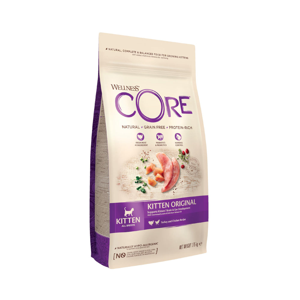 ويلنس كور كيتين اوريجينال طعام جاف للقطط الصغيرة جميع السلالات لدعم صحة الدماغ والعين بنكهة الدجاج والسالمون